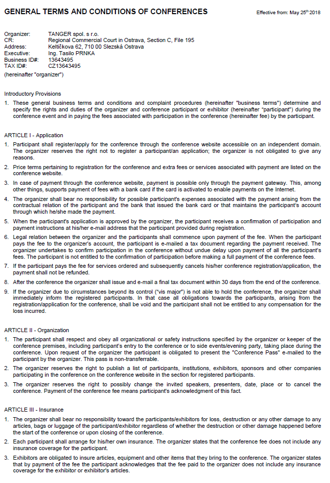 General Terms and Conditions of Conferences